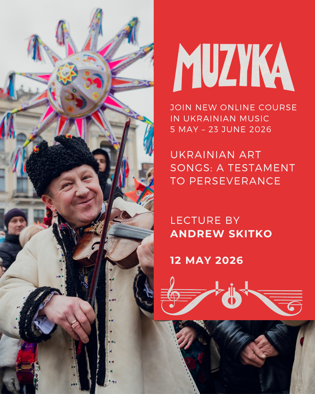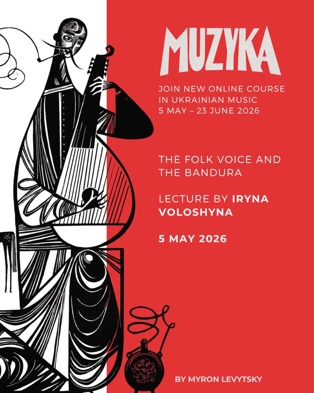 Join the first seminar of our Muzyka 2026 programme on Ukrainian music. In this lecture, we will explore the folk traditions of Ukrainian singing and discover how the kobza became Ukraine's national instrument, the bandura.