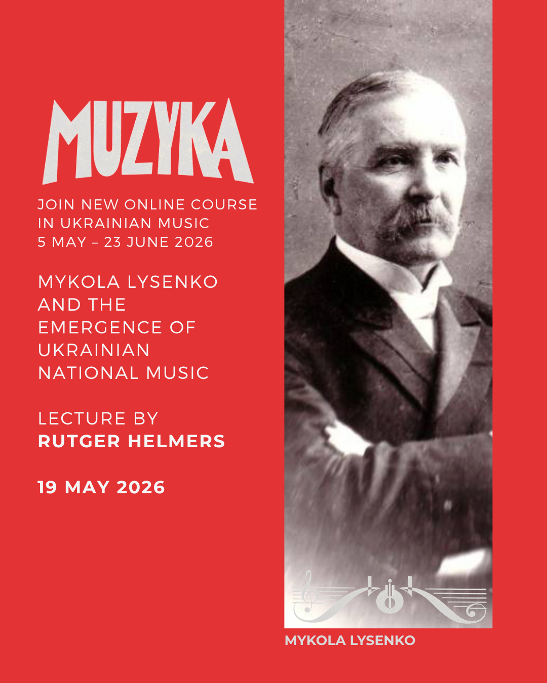 Join the third seminar of our Muzyka 2026 programme on Ukrainian music. We will explore the life and legacy of Mykola Lysenko, who built a Ukrainian national music tradition against the constraints of Russian imperial rule — a compelling story of culture, identity, and resistance.