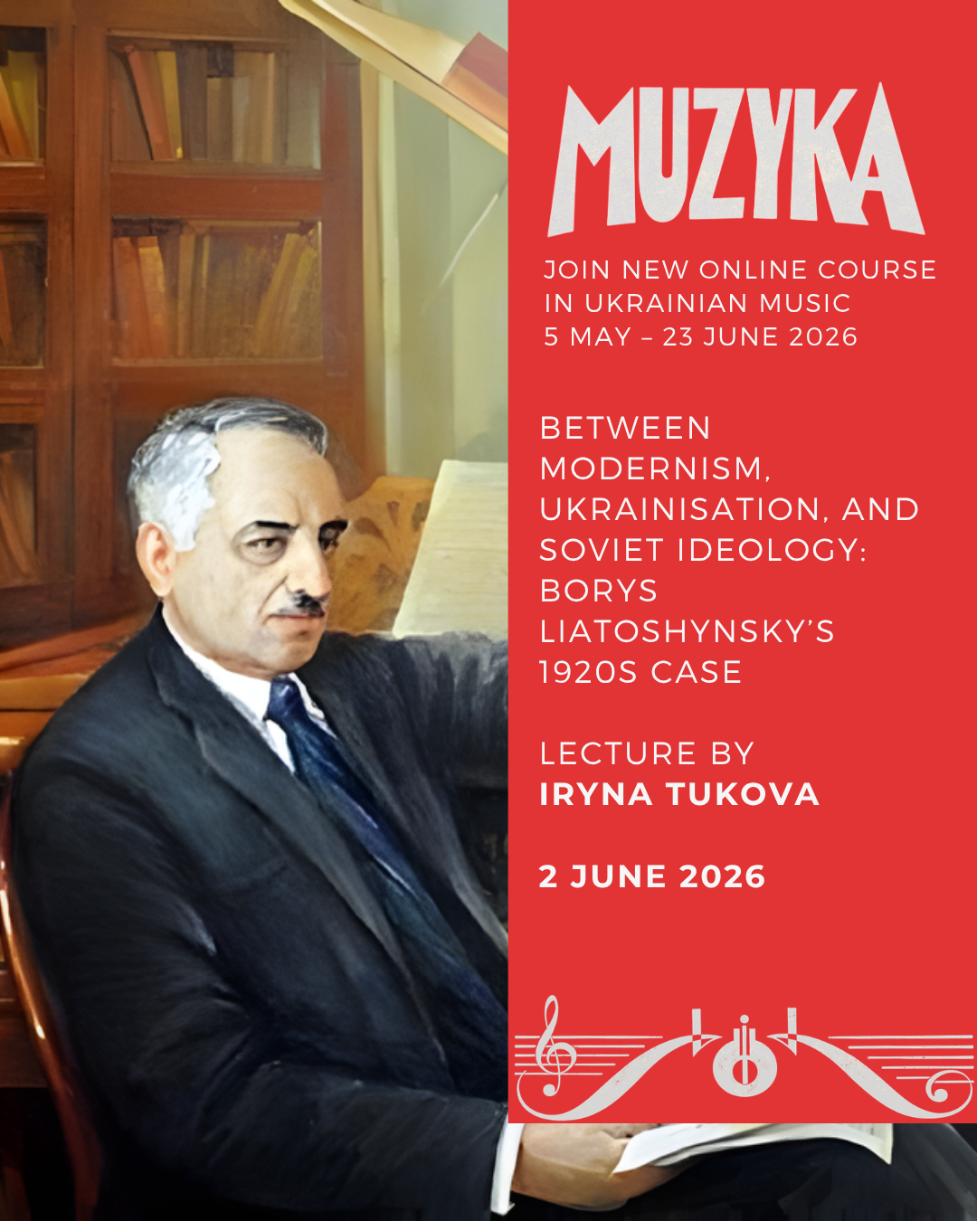 Join the fifth seminar of our Muzyka 2026 programme on Ukrainian music. We will examine the fascinating case of Borys Liatoshynsky — how politics shaped one composer's identity and how he emerged as a leading figure of twentieth-century Ukrainian music.
