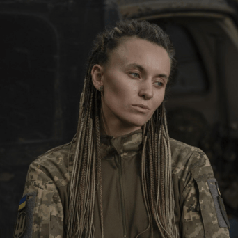 Yaryna Chornohuz (born 1995) is an internationally celebrated poet and member of the Ukrainian Armed Forces. She volunteered as a paramedic in 2019, joined the Marines the following year, and took part in fierce battles in defence of Ukraine following Russia’s full-scale invasion launched on 24 February 2022, and has been decorated for lifesaving. She was joint winner of the Taras Shevchenko Prize for Literature, Ukraine’s most prestigious cultural award, in 2024, for [dasein: defence of presence]. She has published two other poetry collections. She currently serves as a drone pilot and regularly undertakes public readings and other activism and advocacy in Ukraine and overseas. Photo: Sasha Maslov.
